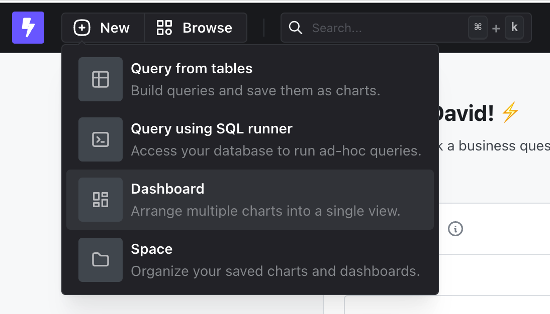 You can either create a new chart from within your dashboard, or you can add an existing chart.Create a new chart
