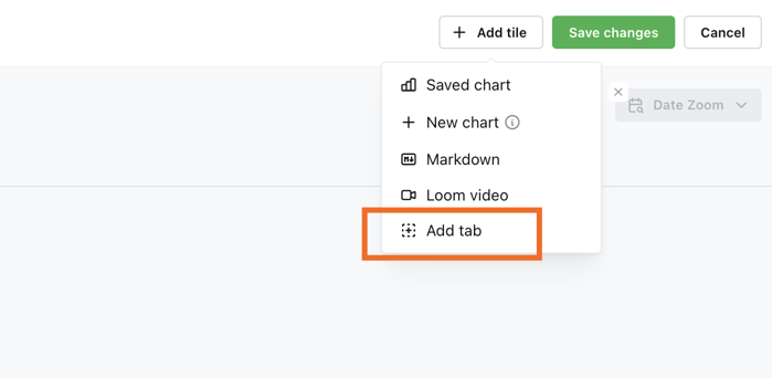 You can add an existing chart to your dashboard by clicking “Add tile” and then “Saved chart”. Clicking any chart will add it at the bottom of your dashboard.