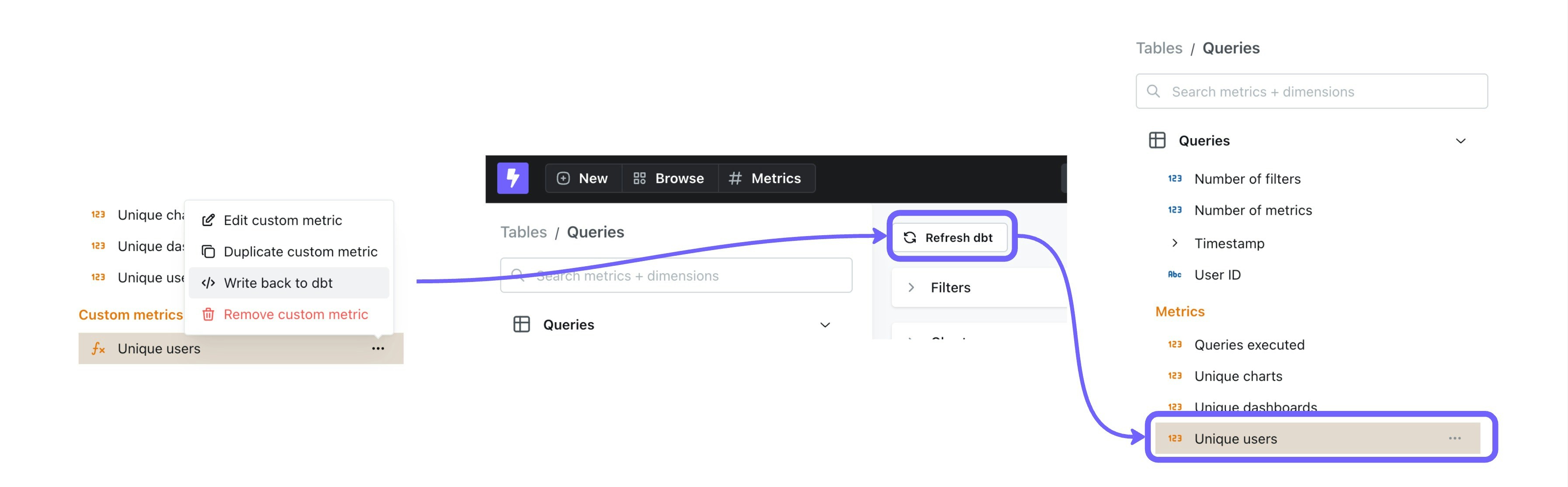 At the moment, if you write back a Custom Dimension to your dbt project’s YAML, the Custom Dimension will not be automatically replaced with the new YAML Dimension. Once your new Dimension is created in dbt, you’ll need to manually update your charts and replace the Custom Dimensions with the new Dimension.Write back dbt Models from the SQL Runner